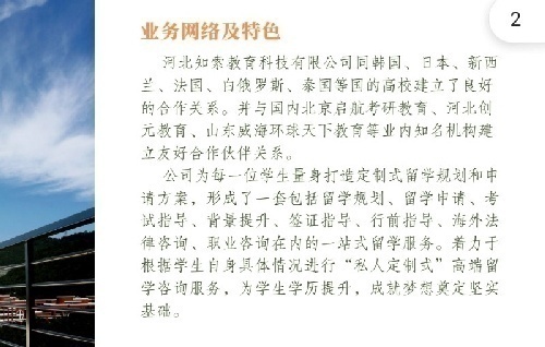 河北知索教育科技有限公司秉承“沟通世界,专注定制式高端留学”的服务理念,专注于高层次出国留学,高校中外合作办学项目及其他国际教育合作项目的开发与运营,是融留学咨询、国际交流及国际教育为一体的综合性教育咨询公司。