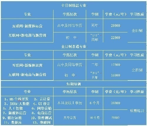 企业精品专业—互联网+新电商与新营销采用企业的思维培养学生,是学院最具就业前景的品牌专业,其独创的精、准、严、实的教学模式及以就业为导向创新的课程体系弥补了传统教育的不足。多年来,学院根据企业对人才的需求,人才对职业的选择,第一次成功的将电子商务平台、互联网科技、计算机技术、管理实战、新营销思维、创业理念有机结合在一起,开创了国际新型、主流的企业精品专业-互联网+新电商与新营销,其主要课程包括新思维全网创业和电子商务及全网新营销两部分内容。在经济发展与科技创新突飞猛进的今天,升学和就业问题日益严峻,学什么专业?怎样学好专业?如何学习?怎样学好习?如何就业?怎样就好业?学一个专业能否找到好工作?拥有一项技术能否赢得高薪已成为家长及学子们深切关注的问题。具有新的育人模式、新的课程体系、新的教学思维的复合型、多元化的互联网+新电商与新营销企业精品专业,为解决新时代学生高薪就业及自主创业开创了新的航程。