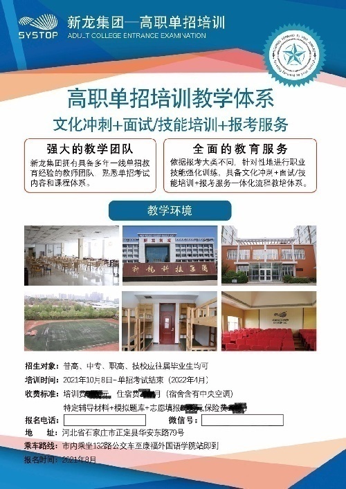 新龙之翼电子商务有限公司作为集团新龙集团旗下的企业,依托集团颇具规模的实训基地,响应国家加强职业教育的号召,针对河北省内社会和中学生源展开单招培训、集训服务。