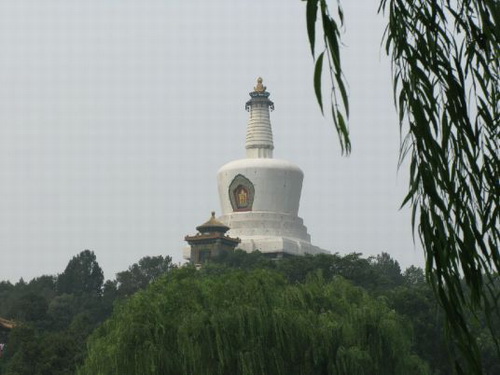 白塔,位于北京北海公园琼华岛上,建于清初顺治八年(1651年),是一座藏式喇嘛塔,也是北海的标志性景点。