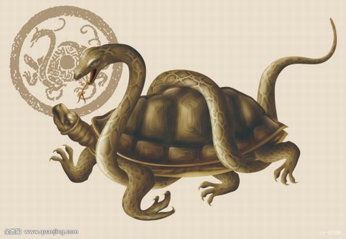 玄武是一种由龟和蛇组合成的一种灵物,四象在中国传统文化中指青龙、白虎、朱雀、玄武,分别代表东西南北四个方向。北方玄武于八卦为坎,于五行主水,象征四象中的老阴,四季中的冬季,同时也是天之北陆。