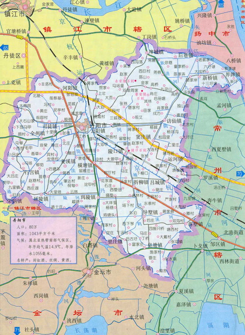 丹阳建置始于战国时期,初为云阳邑。《山海经》中有一条河叫“丹水”,即丹江,根据“山水阴阳,水北为阳”的理论命名丹阳。1987年12月,丹阳撤县设市,为丹阳市,由镇江市代管。丹阳市与常州市新北区交界处建有常州奔牛国际机场,沪宁高速公路(G42沪蓉高速)、312国道、122省道、338省道等是通过公路出入丹阳的主要干道,水运有京杭大运河纵贯丹阳,大港港口是对外开放的长江第三大港。