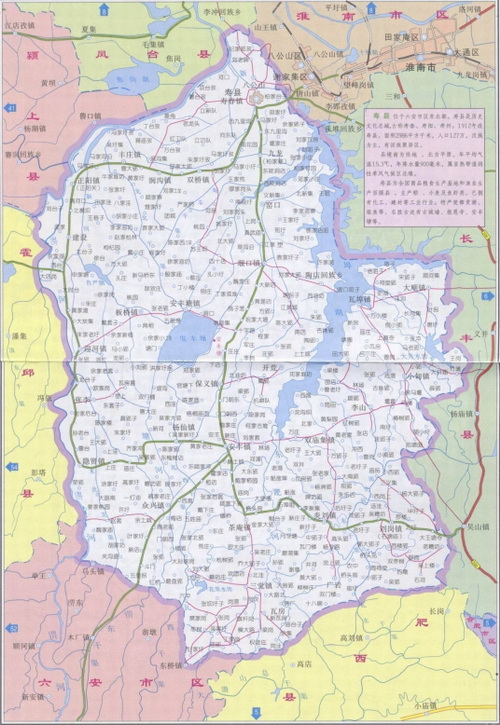 寿县,隶属于安徽省淮南市,位于安徽省中部,淮河南岸,八公山南麓。东邻长丰县,北与淮南市区、凤台县毗邻,西靠霍邱县,南与六安市、肥西县相连。介于东经116°27′—117°04′、北纬31°54′—32°40′之间,总面积为2948平方千米。下辖22个镇、3个乡。