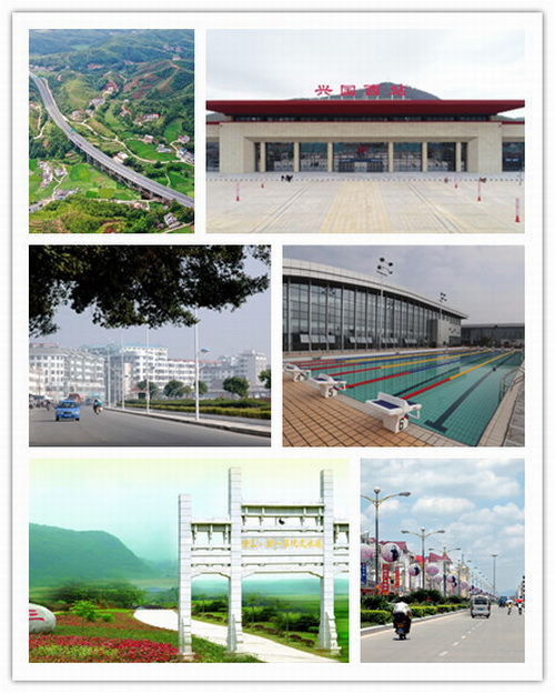 兴国县建县始于三国,吴嘉禾五年(236年)置平阳县,北宋太平兴国七年(982年)以年号“太平兴国”为县名。兴国县拥有319国道、238国道、356国道、泉南高速公路、兴赣高速公路、京九铁路、兴泉铁路、昌赣高速铁路,构建了连南贯北、承东启西、铁海联运、客货兼备交通格局。境内富含萤石、钨、煤、金、稀土、石灰石等20多种矿产资源。