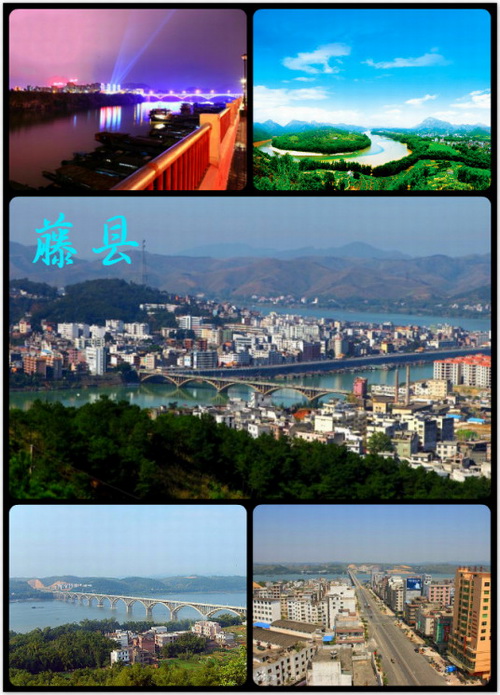 藤县,隶属于广西壮族自治区梧州市,东接苍梧县、长洲区、龙圩区,南接岑溪市、玉林市容县,西邻贵港市平南县,北与蒙山县、昭平县毗邻;距梧州市政府55千米,介于北纬23°02′35"~24°03′09",东经110°21′00"~111°11′27"之间。2008年被评为“广西科学发展十佳县”。