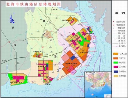 铁山港是广西的天然深水大港,位于北海市东部,东邻广东省湛江市,地处北部湾中心,东经109°32’58.0238”, 北纬21°28’40.8809”。铁山港距北海市区40多公里,距北海机场25公里,距南宁市250公里,距玉林120公里,距湛江市约150公里。铁山港对外交通十分便捷,有完善的对外公路交通网络,主要有南宁--北海高速、合浦--山口高速、玉林--铁山港高速-、北海--铁山港一级公路、营盘经铁山港至闸口二级公路,形成铁山港区三横三纵便捷畅通的区域公路交通运输网络;玉林至铁山港铁路2015年4月20日开通运营。