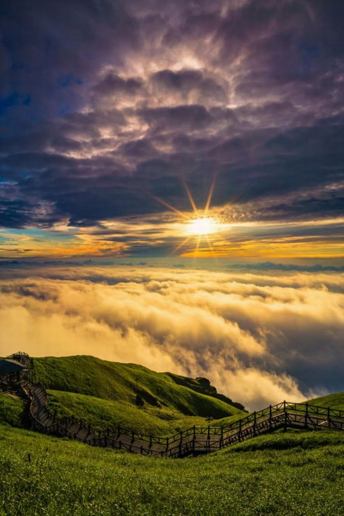 武功山位于中国江西省中西部,居罗霄山脉北支,山体呈东北—西南走向,地跨江西省萍乡市芦溪县、吉安市安福县、宜春市袁州区,主脉绵延120余千米,总面积约970平方千米。
