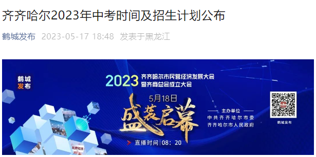 原文标题:齐齐哈尔2023年中考时间及招生计划公布