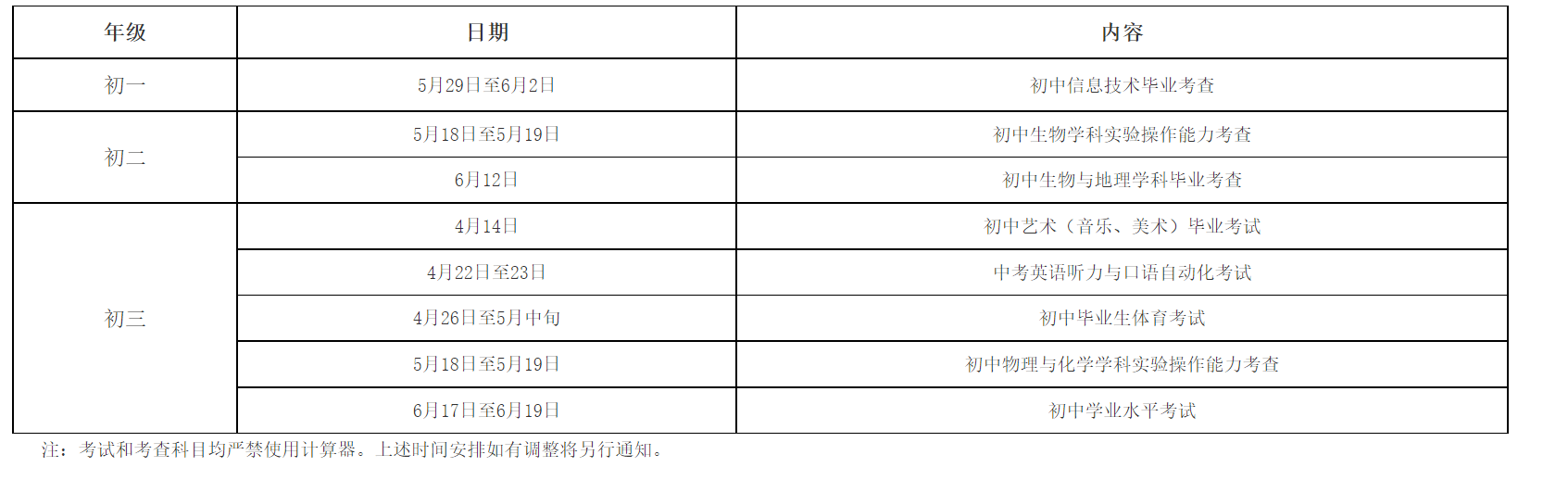 2.成绩呈现方式及用时。成绩分为“合格”与“不合格”两类,生物、地理考查用时均为60分钟,信息技术考查用时45分钟,其他考查科目根据学科要求确定测试用时。