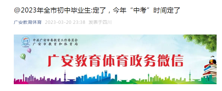 原文标题:2023年全市初中毕业生:定了,今年“中考”时间定了
