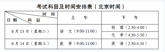 2023年四川成都中考统一考试科目为语文、数学、英语、物理、化学、体育六科,其中,物理、化学包括实验操作考试。体育考试以及物理、化学实验操作考试的具体时间及安排另行通知。语文、数学、英语、物理、化学五科统一考试具体时间安排如下: