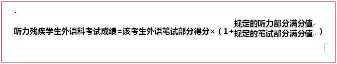 7.凡持有残疾证的听力残疾学生,经本人申请,县(市、区)教育局认定,可以免外语听力测试。听力残疾学生免外语听力测试考生的外语成绩按以下公式计算: