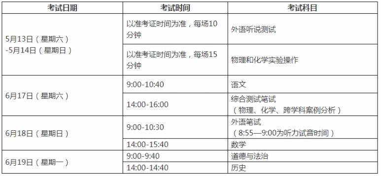 2023年上海嘉定中考时间为6月17日-6月19日,具体时间及考试科目如下: