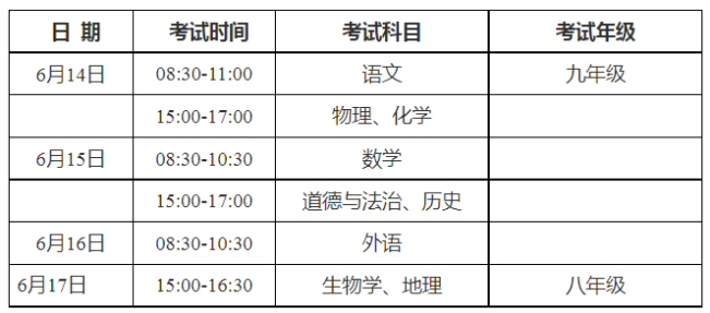 根据滁州市教育体育局公布的《2023年安徽滁州市初中学业水平考试工作的通知》据悉,2023年安徽滁州中考时间安排已公布,安排在6月14日至16日期间举行。具体如下:
