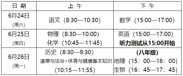 经研究,2023年福建漳州中考时间安排在6月24日-26日举行,具体科目考试时间安排如下: