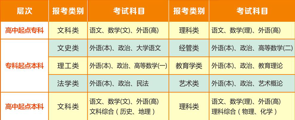 成人高考统考科目