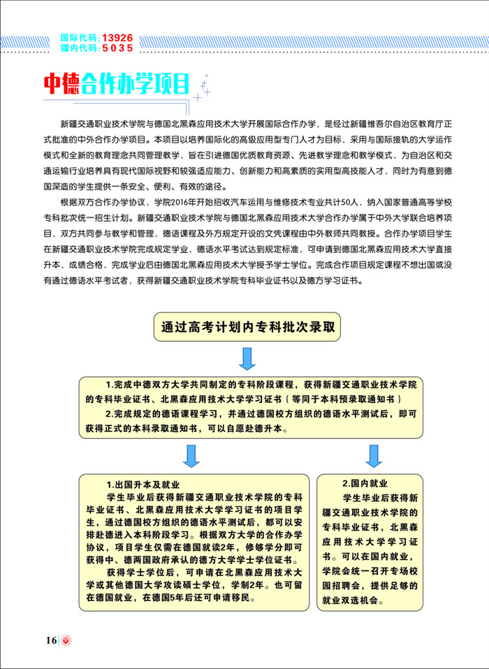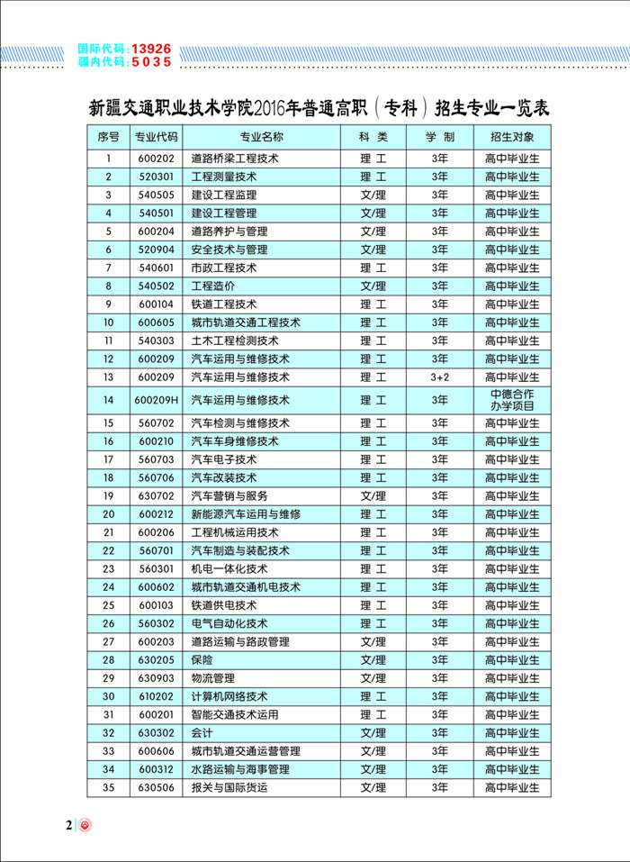 新疆交通职业技术学院2016年普通高职(专科)招生简章