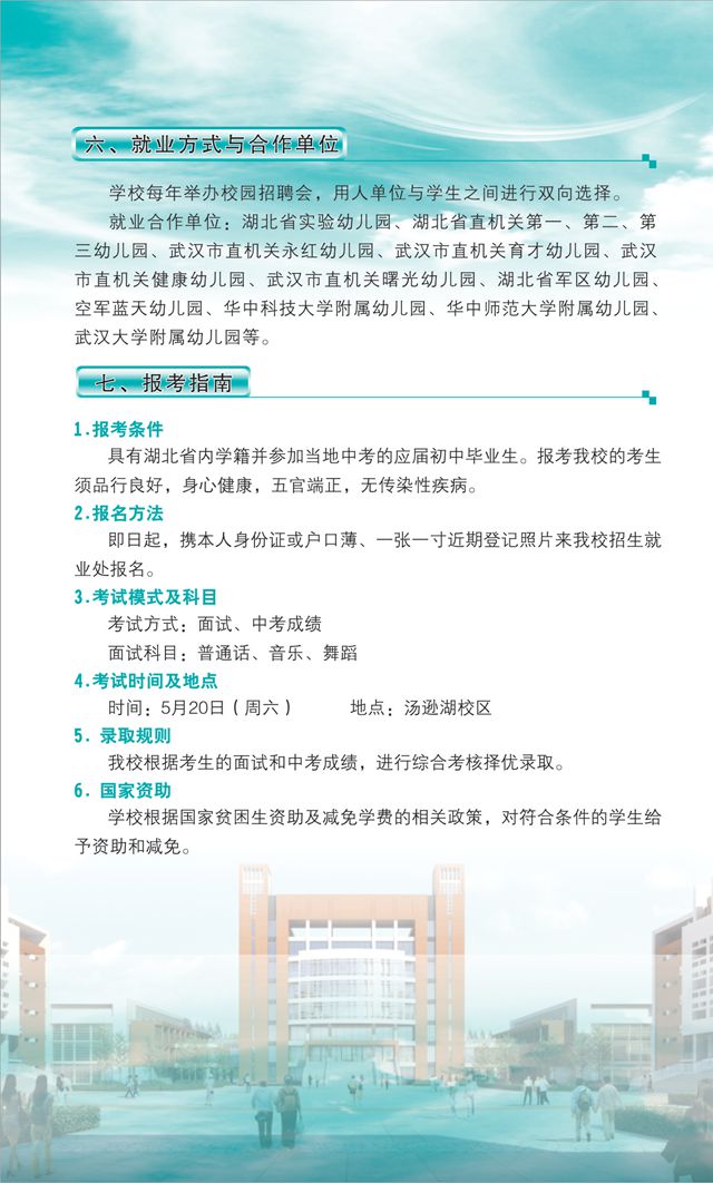 湖北幼儿师范学院初中起点五年一贯制大专招生简章