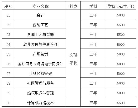 学院坚持全面育人方针,以素质提高为基础,以能力培养为本位,按企事业用人单位对优秀青年干部的要求,着力培养青年优秀人才。学院面向餐饮服务、社区服务、民政管理、旅游服务、商贸服务、信息服务、法律服务方向,开设相关专业22个。现开设快递运营管理、国际商务(跨境电子商务)、幼儿发展与健康管理、法律事务、西餐工艺、会计、市场营销、烹调工艺与营养、计算机网络技术、软件技术、数字媒体应用技术、物流管理、会展策划与管理、电子商务、连锁经营管理、社区管理与服务、人物形象设计、婚庆服务与管理、旅游管理、酒店管理、国际商务、民政管理。其中,烹调工艺与营养为国家试点专业,社区管理与服务为省市级试点专业。学院各专业均有具备高级职称的专业学科带头人。
