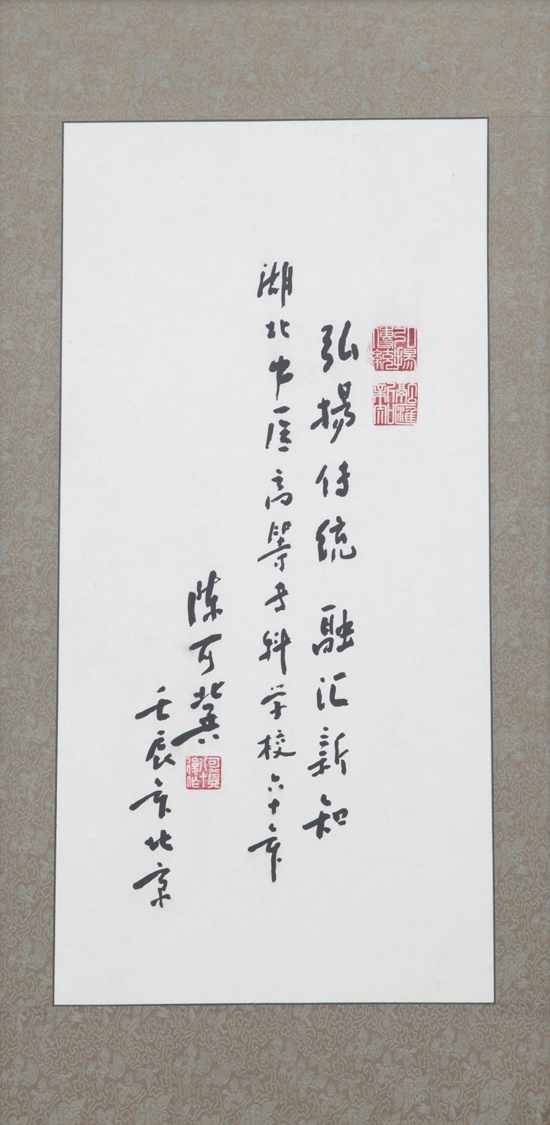 中国科学院院士、中国中西医结合学会会长陈可冀为学校题词