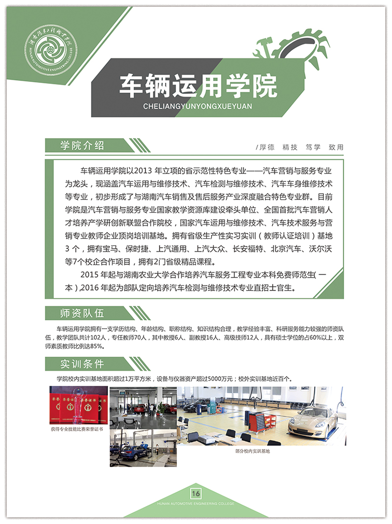 湖南汽车工程职业学院2017年招生简章(宣传画册)