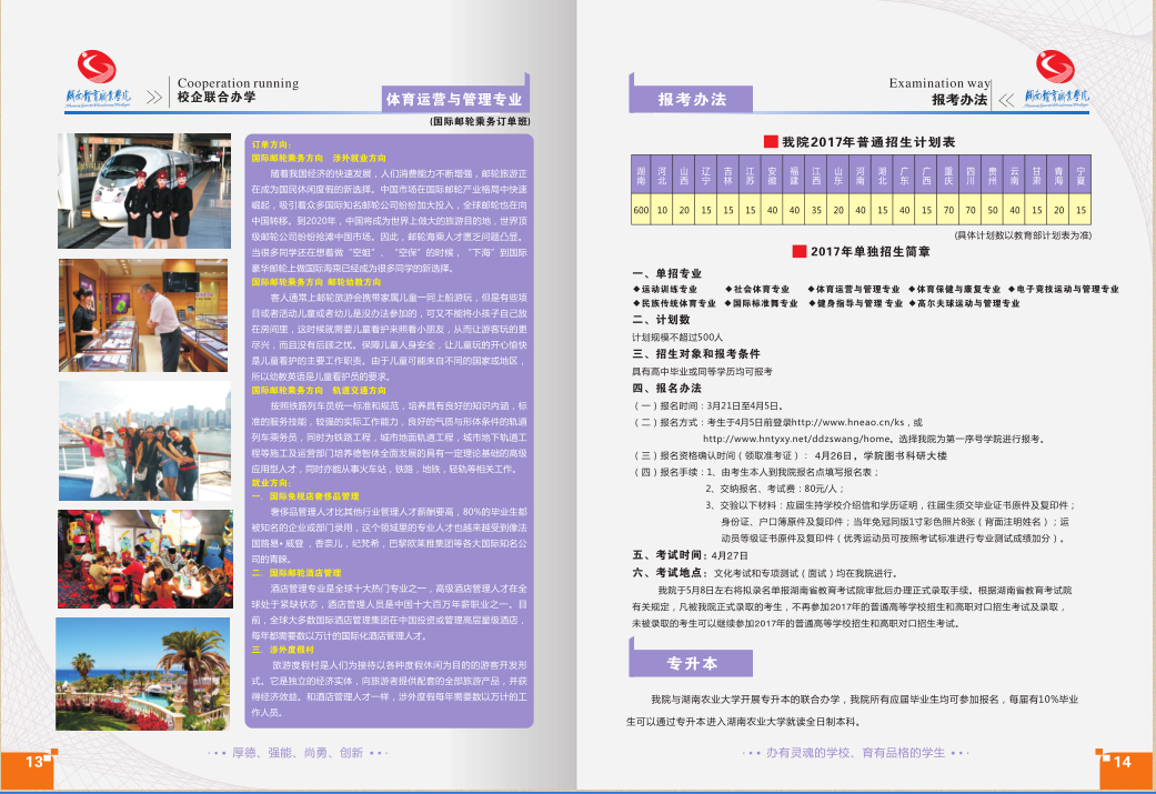 湖南体育职业学院2017年招生简章