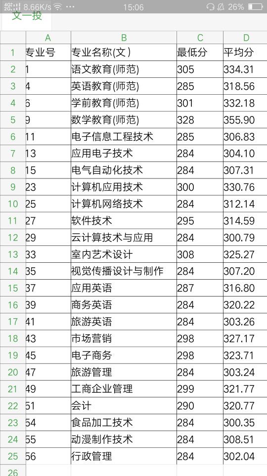 汕尾职业技术学院2017年普高第一志愿组各专业投档分数线