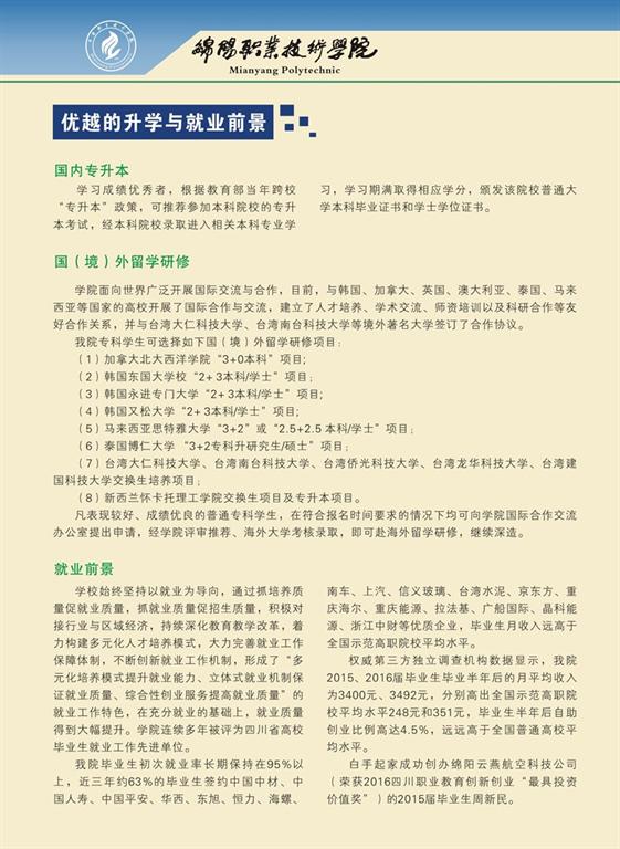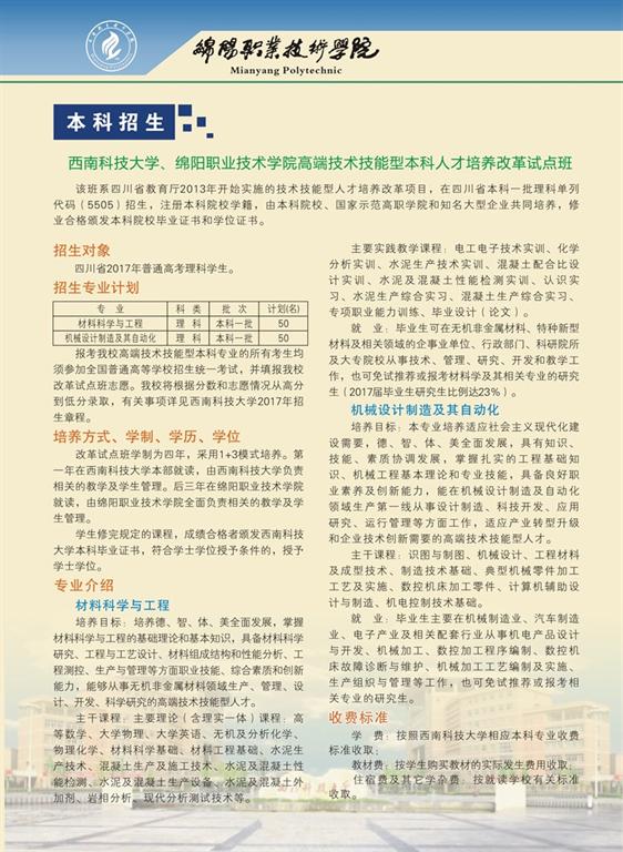 绵阳职业技术学院2017年招生简章