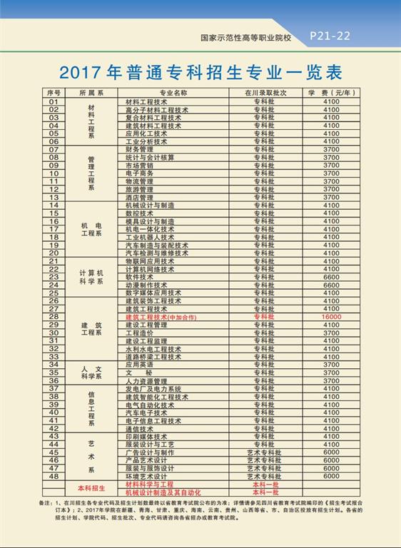 四川机电职业技术学院2017年三年制普通高职招生简章