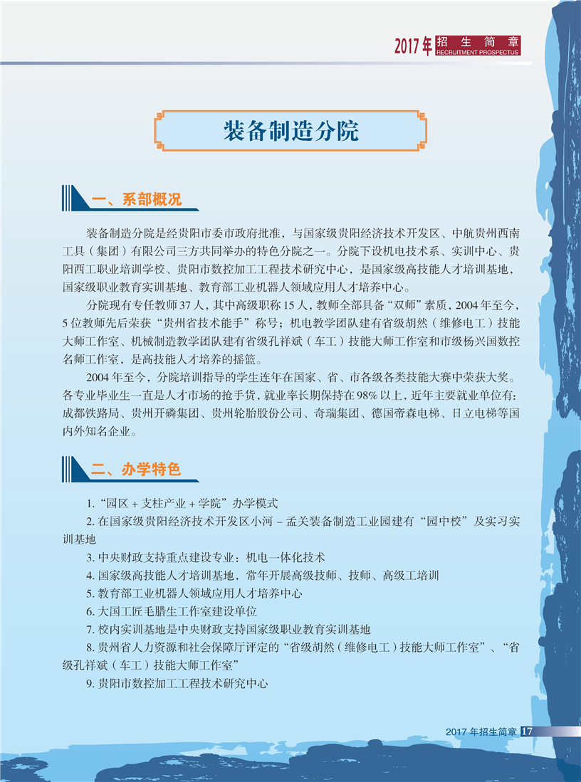 贵阳职业技术学院装备制造分院专业