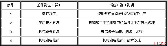 加工制造业数控设备使用维护、工业企业机电产品设计、工业企业机电设备安装调试维护、机电企业营销与技术服务等。