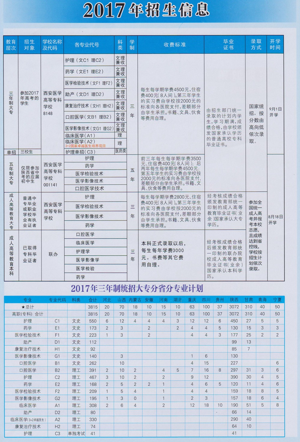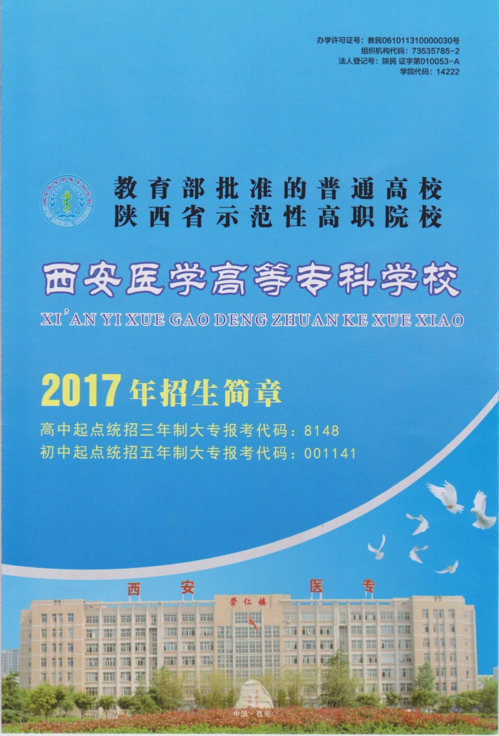 西安医学高等专科学校2017年招生简章