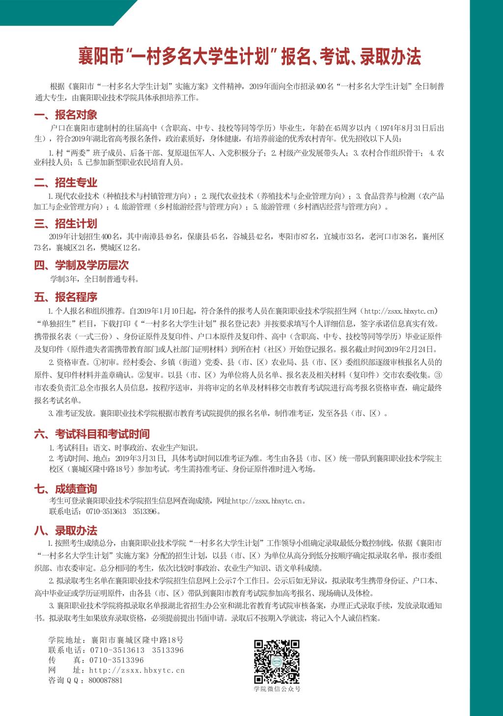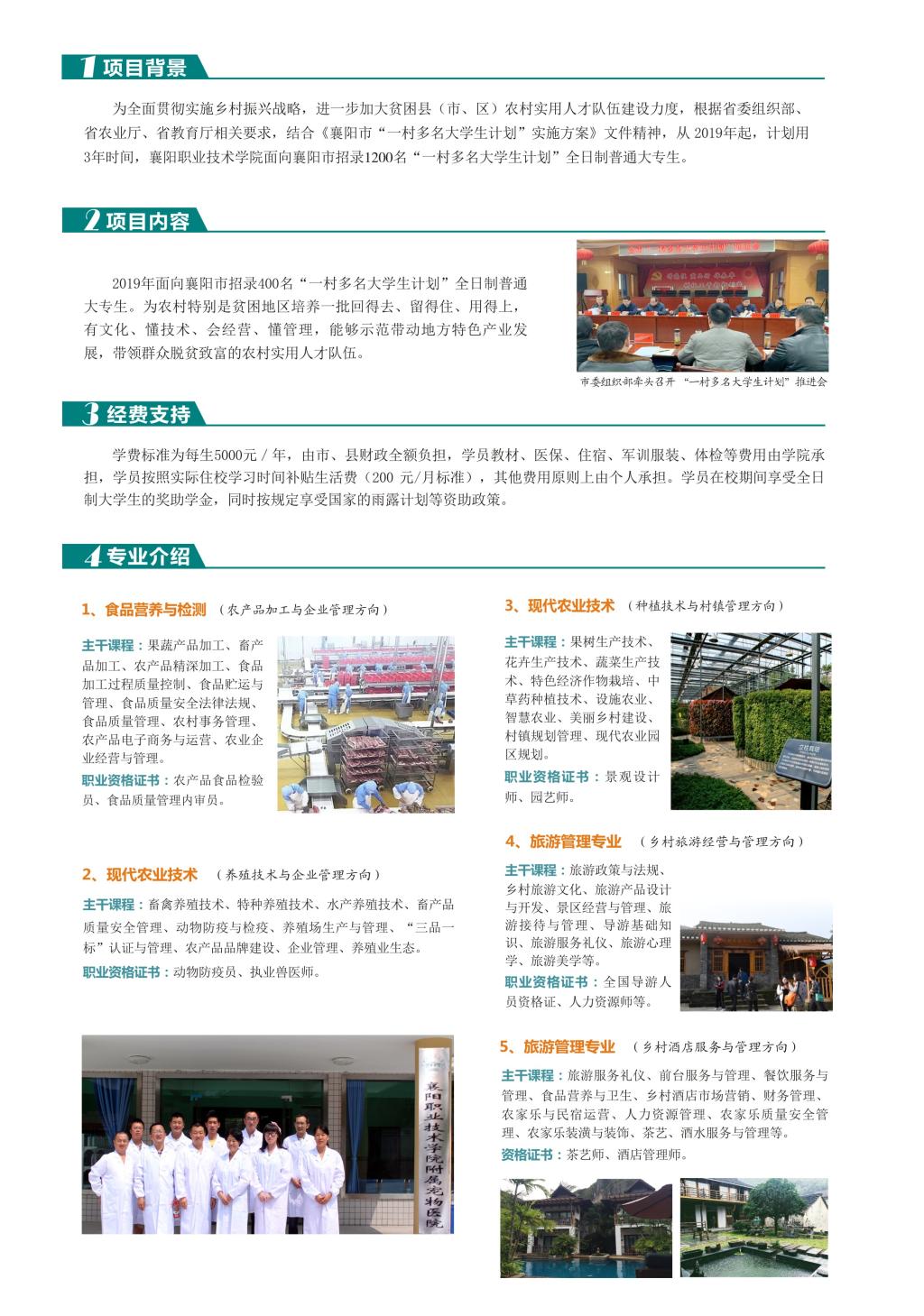 襄阳职业技术学院“一村多名大学生计划”招生简章