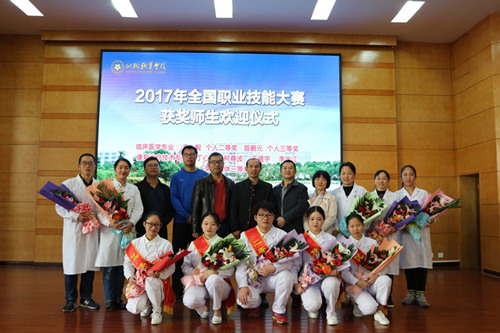 医学院突出实践能力培养,学生多次在国家级、省、市级各类比赛中获奖。在全国职业院校技能大赛护理技能赛项中,2017、2018年连续两年获二等奖,均为湖北省所获最高奖项;在2017年湖北省医学职业教育护理技能大赛中获团体一等奖,另获个人一等奖5项,二等奖4项,三等奖3项。2017年全国高等职业院校临床专业技能大赛获二等奖1项、三等奖1项。第三届全国康复治疗技术专业学生技能大赛中获团体三等奖。毕业生在全国各级各类医疗机构中技能突出、勇挑大梁,成为业务骨干。历年毕业生就业率高达96%,普通专升本上线率为35%,毕业生双证率达100%,护士执业资格考试通过率达96%。