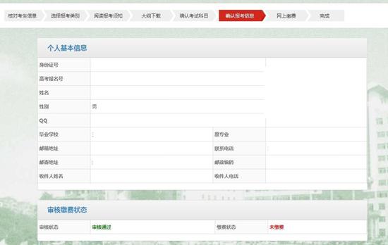 7.确认报考信息。此时考生审核状态为“未审核”,需要学校进行审核通过后,考生才能报考缴费。
