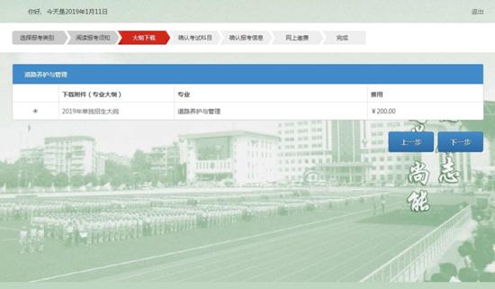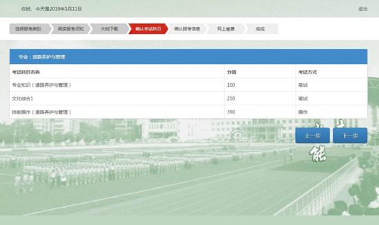 6.确认考试科目,点击【下一步】进入下一页面。