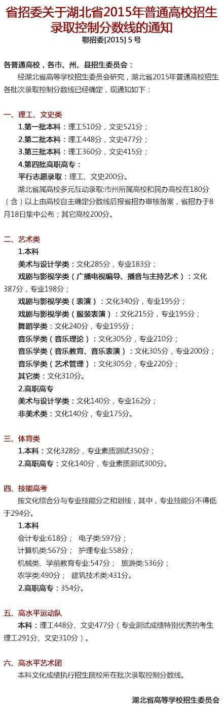 一本:理工510分,文史 521分;二本:理工448分,文史477分;三本:理工360分,文史415分;高职高专:理工、文史200;体育类:328。