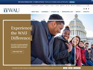 华盛顿基督复临安息日会大学成立于1904年,是一所非营利性私立高等教育机构,位于马里兰州大城市塔科马公园(人口范围为10000-49999人)的郊区。华盛顿基督复临安息日会大学(WAU)是一所规模非常小(uniRank招生范围:1000-1999名学生)的男女同校美国高等教育机构,正式隶属于基督复临安息日会宗教,由中部各州高等教育委员会正式认证。华盛顿基督复临安息日会大学(WAU)提供获得官方认可的高等教育学位的课程和计划,如若干研究领域的学士前学位(即证书、文凭、副学士或基础)、学士学位、硕士学位。有关更多详细信息,请参见下面的uniRank学位等级和学习领域矩阵。这所拥有116年历史的美国高等教育机构根据入学考试和学生过去的学习成绩和成绩实行选择性录取政策。入学率在50-60%之间,这使得这家美国高等教育机构成为一所中等水平的选择性机构。欢迎国际学生申请入学。WAU还为学生提供若干学术和非学术设施和服务,包括图书馆、住房、体育设施、经济援助和/或奖学金、出国留学和交流计划、在线课程和远程学习机会,以及行政服务。