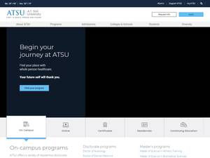 A.T.Still大学成立于1892年,是一所非营利性私立专业高等教育机构,位于密苏里州柯克斯维尔(人口范围为10000-49999人)小镇的农村地区。该学院还在梅萨设有分校。A.T.Still University(ATSU)是一所由美国高等教育委员会正式认证的小型男女同校美国高等教育机构(uniRank招生范围:4000-4999名学生)。A.T.Still大学(ATSU)提供课程和项目,以获得官方认可的高等教育学位,如若干研究领域的学士学位、硕士学位、博士学位。有关更多详细信息,请参见下面的uniRank学位等级和学习领域矩阵。这所拥有128年历史的美国高等教育机构根据入学考试和学生过去的学习成绩和成绩实行选择性录取政策。欢迎国际学生申请入学。ATSU还为学生提供若干学术和非学术设施和服务,包括图书馆、住房、体育设施、经济援助和/或奖学金、在线课程和远程学习机会,以及行政服务。