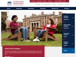 Fairleigh Dickinson大学成立于1942年,是一所非营利性私立高等教育机构,位于新泽西州蒂内克镇(人口范围为10000-49999人)的郊区。这所学校在麦迪逊还有一个分校。Fairleigh Dickinson大学(FDU)是一所中等规模(uniRank招生范围:9000-9999名学生)男女同校的美国高等教育机构,由中部各州高等教育委员会正式认证。Fairleigh Dickinson大学(FDU)提供获得官方认可的高等教育学位的课程和计划,如若干研究领域的学士前学位(即证书、文凭、副学士或基础)、学士学位、硕士学位、博士学位。有关更多详细信息,请参见下面的uniRank学位等级和学习领域矩阵。这所拥有78年历史的美国高等教育机构根据入学考试和学生过去的学习成绩和成绩实行选择性录取政策。入学率在80-90%之间,这使得美国高等教育机构成为选择性最低的机构。国际申请人有资格申请入学。FDU还为学生提供一些学术和非学术设施和服务,包括图书馆、住房、体育设施、经济援助和/或奖学金、出国留学和交流计划、在线课程和远程学习机会,以及行政服务。