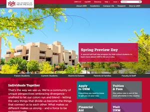 新墨西哥大学成立于1889,是一个非营利性的公立国家高等教育机构,位于阿尔伯克基大城市(人口5000万至100000人口)的城市背景下,新墨西哥。该学院还在以下地点设有分校:塔斯、盖洛普、巴伦西亚、洛斯阿拉莫斯。新墨西哥大学是高等教育委员会的正式认证机构,是一所规模很大的招生单位:3000至399名学生。新墨西哥大学(UNM)提供课程和项目,以获得官方认可的高等教育学位,如学士学位,硕士学位,博士学位在几个领域的研究。有关更多详细信息,请参见下面的uniRank学位等级和学习领域矩阵。这所拥有131年历史的美国高等教育机构根据入学考试和学生过去的学习成绩和成绩实行选择性录取政策。入学率在70-80%之间,这使得这家美国高等教育机构在某种程度上具有选择性。欢迎国际学生申请入学。UNM还为学生提供一些学术和非学术设施和服务,包括图书馆、住房、体育设施、经济援助和/或奖学金、出国留学和交流计划、在线课程和远程学习机会,以及行政服务。