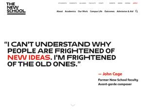 新学校成立于1919年,是一所非营利性私立高等教育机构,位于纽约市大都市(人口超过500万)的城市环境中。新学校(TNS)由美国中部各州高等教育委员会(Middle State Commission on Higher Education)正式认证,是一所大型(uniRank招生范围:10000-14999名学生)男女同校的美国高等教育机构。新学校(TNS)提供获得官方认可的高等教育学位的课程和计划,如若干研究领域的学士前学位(即证书、文凭、副学士或基础)、学士学位、硕士学位、博士学位。有关更多详细信息,请参见下面的uniRank学位等级和学习领域矩阵。这所拥有101年历史的美国高等教育机构根据入学考试和学生过去的学习成绩和成绩实行选择性录取政策。入学率在50-60%之间,这使得这家美国高等教育机构成为一所中等水平的选择性机构。国际申请人有资格申请入学。TNS还为学生提供一些学术和非学术设施和服务,包括图书馆、住房、经济援助和/或奖学金、出国留学和交流计划、在线课程和远程学习机会,以及行政服务。