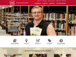 米诺州立大学成立于1913年,是一所非营利性公立高等教育机构,位于北达科他州米诺大城镇(人口范围为10000-49999人)的农村地区。由高等教育委员会正式认证的Minot州立大学(MSU)是一所小型(uniRank招生范围:3000-3999名学生)男女同校的美国高等教育机构。Minot州立大学(MSU)提供获得官方认可的高等教育学位的课程和计划,如若干研究领域的学士前学位(即证书、文凭、副学士或基础)、学士学位、硕士学位、博士学位。有关更多详细信息,请参见下面的uniRank学位等级和学习领域矩阵。这所拥有107年历史的美国高等教育机构根据入学考试和学生过去的学习成绩和成绩实行选择性录取政策。入学率在50-60%之间,这使得这家美国高等教育机构成为一所中等水平的选择性机构。欢迎国际学生申请入学。密歇根州立大学还为学生提供一些学术和非学术设施和服务,包括图书馆、住房、体育设施、经济援助和/或奖学金、出国留学和交流计划、在线课程和远程学习机会,以及行政服务。