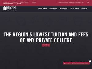 布莱恩学院成立于1930年,是一所非营利性私立高等教育机构,位于田纳西州中等城市代顿(人口2500-9999人)的农村地区。该学院还在查塔努加设有分校。布莱恩学院是一所规模非常小(uniRank招生范围:1000-1999名学生)的男女同校美国高等教育机构,正式隶属于基督教教派间宗教,由南方学院协会学院委员会正式认证。布莱恩学院提供获得官方认可的高等教育学位的课程和计划,如若干研究领域的学士前学位(即证书、文凭、副学士或基础)、学士学位、硕士学位。有关更多详细信息,请参见下面的uniRank学位等级和学习领域矩阵。这所拥有90年历史的美国高等教育机构根据入学考试和学生过去的学习成绩和成绩实行选择性录取政策。入学率在50-60%之间,这使得这家美国高等教育机构成为一所中等水平的选择性机构。欢迎国际学生申请入学。布莱恩学院还为学生提供若干学术和非学术设施和服务,包括图书馆、住房、体育设施、经济援助和/或奖学金、出国留学和交流计划、在线课程和远程学习机会,以及行政服务。