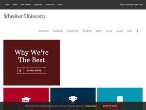 Schreiner大学成立于1923年,是一所非营利性私立多学科高等教育机构,位于德克萨斯州大城镇克尔维尔(人口范围为10000-49999人)的农村地区。Schreiner大学是一所规模非常小(uniRank招生范围:1000-1999名学生)的男女同校美国高等教育机构,正式隶属于基督教长老会宗教,由南方学院协会学院委员会正式认证。施莱纳大学提供获得官方认可的高等教育学位的课程和计划,如若干研究领域的学士前学位(即证书、文凭、副学士或基础)、学士学位、硕士学位。有关更多详细信息,请参见下面的uniRank学位等级和学习领域矩阵。这所拥有97年历史的美国高等教育机构根据入学考试和学生过去的学习成绩和成绩实行选择性录取政策。入学率在90-100%之间,这使得该美国高等教育机构成为选择性最低的机构。国际申请人有资格申请入学。施莱纳大学还为学生提供若干学术和非学术设施和服务,包括图书馆、住房、体育设施、经济援助和/或奖学金、出国留学和交流计划、在线课程和远程学习机会,以及行政服务。