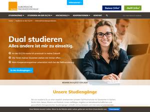 成立于2001年的Europä;伊施法霍奇(欧洲大学应用科学)是一个私立的高等教育机构,位于BR&UUML的大城市郊区。北莱茵-威斯特伐利亚州hl(人口范围为10000-49999人)。该学院还在以下地点设有分校:纽斯、亚琛。fü部长正式认可;北莱茵-威斯特法伦州文化和科学部,欧洲和澳大利亚管理学院;ische Fachhochschule(EUFH)是一所规模非常小(uniRank招生范围:1000-1999名学生)的男女同校德国高等教育机构。欧罗巴ä;ische Fachhochschule(EUFH)提供获得官方认可的高等教育学位的课程和计划,如若干研究领域的学士学位、硕士学位。有关更多详细信息,请参见下面的uniRank学位等级和学习领域矩阵。这所拥有19年历史的德国高等教育机构实行基于入学考试的选择性录取政策。国际申请人有资格申请入学。EUFH还为学生提供一些学术和非学术设施和服务,包括图书馆、体育设施、留学和交流项目以及行政服务。