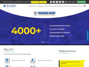 普尔尼玛大学成立于2012年,是一所私立高等教育机构,位于拉贾斯坦邦斋浦尔大都市(人口范围为1000000-5000000)的农村地区。Poornima大学(PU)是印度大学教育委员会正式认可的一所小型(uniRank招生范围:2000-2999名学生)男女同校的印度高等教育机构。普尔尼玛大学(PU)提供课程和项目,以获得官方认可的高等教育学位,如若干研究领域的学士学位、硕士学位、博士学位。有关更多详细信息,请参见下面的uniRank学位等级和学习领域矩阵。这所拥有8年历史的印度高等教育机构根据学生过去的学习成绩和成绩实行选择性录取政策。该大学还为学生提供若干学术和非学术设施和服务,包括图书馆、住房、体育设施、经济援助和/或奖学金、出国留学和交流计划以及行政服务。