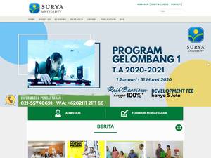 苏里亚大学(Surya University)成立于2013年,是一所非营利性私立高等教育机构,位于班顿市坦格朗(人口范围为1000000-5000000)郊区。苏利亚大学(SU)规模非常小(uniRank招生范围:1000-1999名学生),由印度尼西亚共和国国家研究与技术部(研究与技术部/印度尼西亚共和国国家研究与创新机构)Kementerian Riset and Teknologi/Badan Riset dan Inovasi National正式认可男女同校的印度尼西亚高等教育机构。苏利亚大学(Universitas Surya,SU)提供在多个研究领域获得官方认可的高等教育学位的课程和项目。有关更多详细信息,请参见下面的uniRank学位等级和学习领域矩阵。这所拥有7年历史的印尼高等教育机构根据学生过去的学习成绩和成绩实行选择性录取政策。SU还为学生提供一些学术和非学术设施和服务,包括图书馆、经济援助和/或奖学金、出国留学和交流项目以及行政服务。