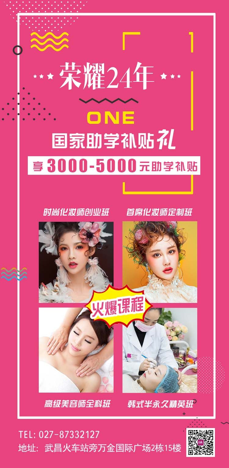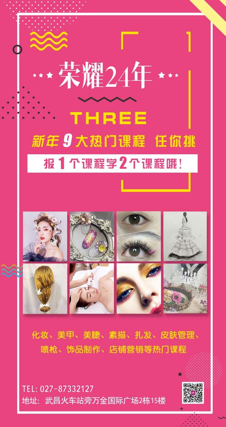武汉经典化妆学校全面开设韩式半永久、化妆造型、高端美甲、美容养生、时尚美发、韩国高端皮肤管理、产后修复等专业课程。