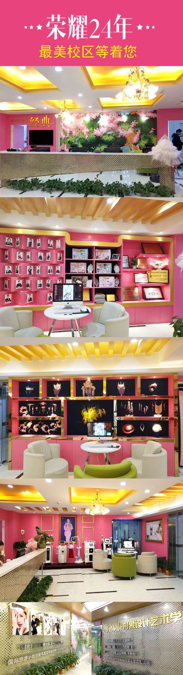 经典学校建校1994年,建校24年以来,坚持以国际时尚潮流教学内容为主的, 广泛吸收西方现代形象设计的教育成果,致力为国内美业培养高端人才!